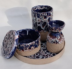 مشخصات محصول : شامل: ۱ عدد گلدان، ۱ شکلاتخوری، ۱ جاشمعی، ۱ دیس جنس: سرامیک (گل استونور) تکنیک ساخت: دستساز پخت در کوره: بالای 1150 درجه سانتیگراد لعاب: بدون سرب، ایمن برای مصرف خوراکی زمان آمادهسازی: ۲ تا ۳ هفته...